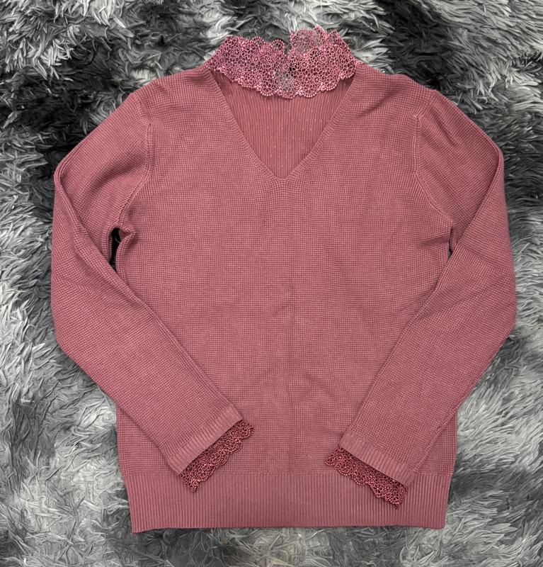 ✨ Жіночий гольф-светрик з мереживом Колір: пудрово-рожевий Розмір: універсальний 42-46 Дуже мʼякий та приємний на дотик Ніжний та елегантний светрик у красивому пудровому відтінку. Має приємну текстуру, V-подібний виріз та витончені мереживні вставки на манжетах і комірі — виглядає дуже жіночно та акуратно. ✔ М’який та комфортний у носінні ✔ Гарно тягнеться, підкреслює фігуру ✔ Красива мереживна деталь додає вишуканості ✔ Ідеальний для офісу, побачень та повсякденних образів ✔ Стан: новий, виробник Турція Стильний варіант, який легко поєднується з джинсами, спідницями чи класичними брюками. 💗 Бірок на ньому немає Фото на собі не роблю