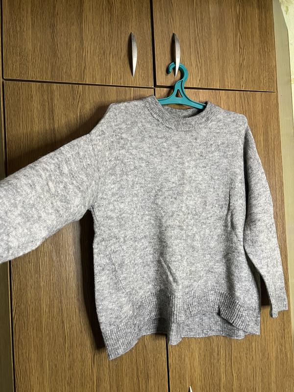 Напівобʼєм грудей 59 Довжина від горла 60 Довжина рукава 42 Светр ззаду трохи довший Сверт шерстяний, на голе тіло трішки колиться Розмір XL, але гарно сидить і на М як Овер сайз