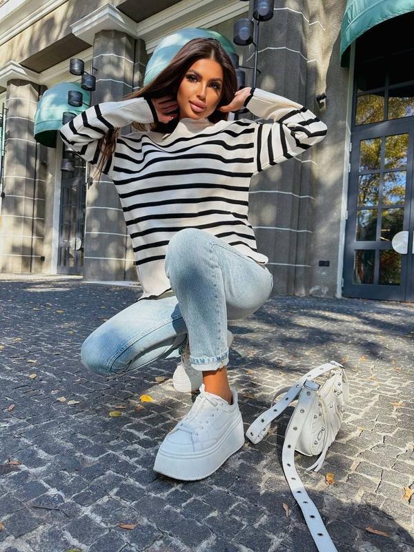 Улюблений подовжений смугастик оверсайз у смужку . Чудова якість🔥 Топ продажів 2025👑 Реал фото✅ # 0182 /1 ▪️Виробник Туреччина 🇺🇿 ▪️Колір: білий ▪️Розмір єдиний 42-46 ▪️Склад тканини:Акрил 70%, Вовна 30% ▪Ціна 1060 грн