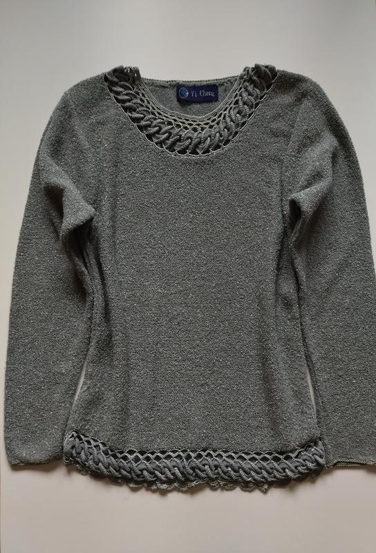 Имеются дефекты: местами на кофточке есть катышки (пушек), примеры показаны на двух последних фото; спереди сверху не яркая пятнышка (показано на 7 -8 фото, более дальний и ближе ракурсы). Кофта с люрексовой нитью, имеет легкий приятный блеск. Бирки со складом и размером, к сожалению, нет, ткань тянется. Ориентировочно будет на 44-46 (S-M) размер. Вся одежда хранится в сложенном виде, нужно будет отпарить или прогладить (если это предусмотрено производителем). ОРИЕНТУЙТЕ ТОЛЬКО НА ЗАМЕРЫ! Замеры сняты поверх одежды в полуобхвате в спокойном (нерастянутом) состоянии (разрешение погрешности в замерах +/- 1 см). Чтобы правильно определиться с размером сверьте замеры со своими настройками и замерами своей схожей одежды. Если нужны дополнительные замеры обратитесь. Длина от высшей точки на плече до низа: 63/65 см Плечи: 38 см Длина рукава от плеча: 58/58,5 см Полуобхват от подмышки до подмышки: 42 см Полуобхват талии: 40 см Полуобхват в самом низу: 46 см Доставка: доставку оплачивает покупатель при получении посылки. Личных встреч нет. Оплата: с помощью Безопасной оплаты или полная оплата на карту Приват Банка. Резерв товару для оплати 24 години. Возвращение и обмен: товар не новый, поэтому если что-то не подошло возврату или обмену подлежит сразу после получения посылки. Стоимость доставки товара обратно оплачивает покупатель. При покупке товара учитывайте, что камера не с абсолютной точностью передает цвет (оттенок может быть светлее или темнее).