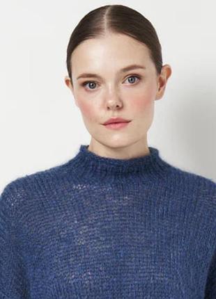 Тонкий жіночий светр-павутинка темно-синього кольору з вмістом натуральної пряжі вовни та мохеру. В ідеальному стані. Пог 50 см. Ширина в плечах 43 см. Р 67 см. Д 55 см.
