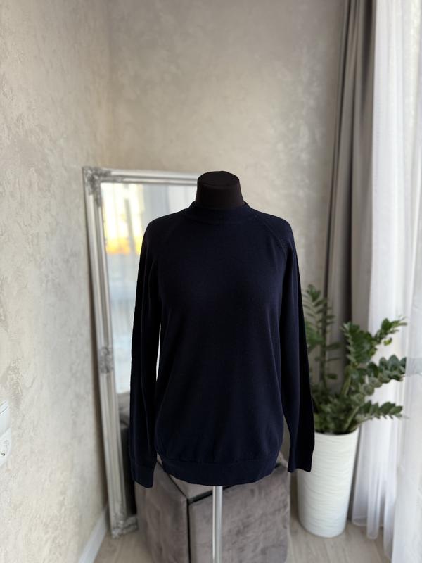 Базовий светр в темно-синьому кольорі, 100% стрижена вовна, не колючий❤️ Стан ідеальний Рр М (14) Заміри: Плечі приспущені Під пахвами піб 52 см Рукав від самої шийки 76 см Довжина 69 см