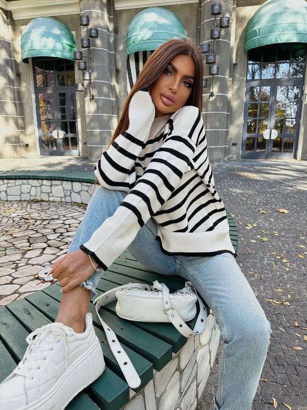 В великій кількості в контейнері Улюблений подовжений смугастик оверсайз у смужку . Чудова якість🔥 Топ продажів 2025👑 Реал фото✅ # 0182 ▪️Виробник Туреччина 🇺🇿 ▪️Колір: білий ▪️Розмір єдиний 42-46 ▪️Склад тканини:Акрил 70%, Вовна 30%