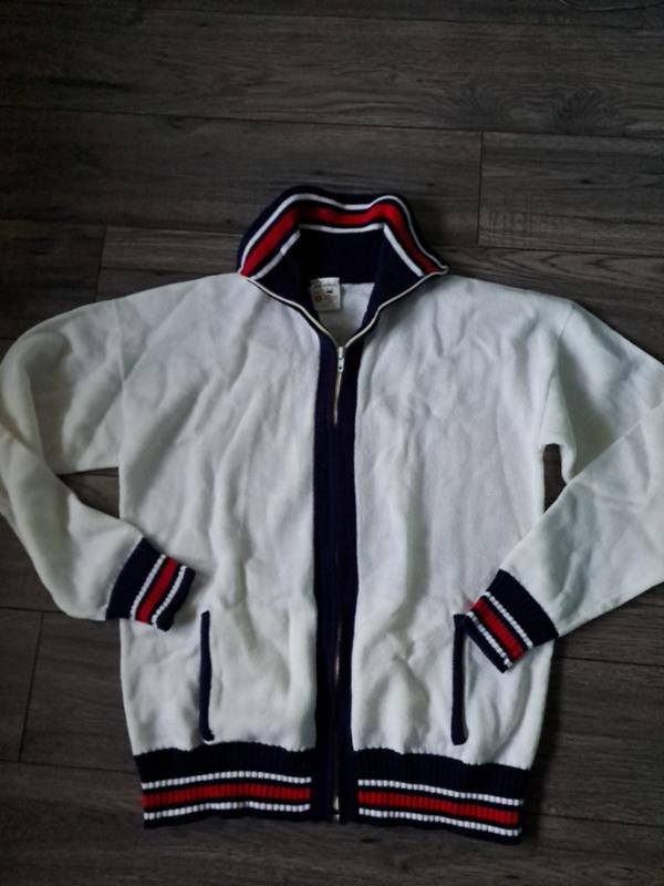 свитер кофта на молнии с воротником стойка,карманами, связанный новыйразмер L, замеры в спокойном состоянии:ног 52,нот 52, бедра на резинке 40,длина 63