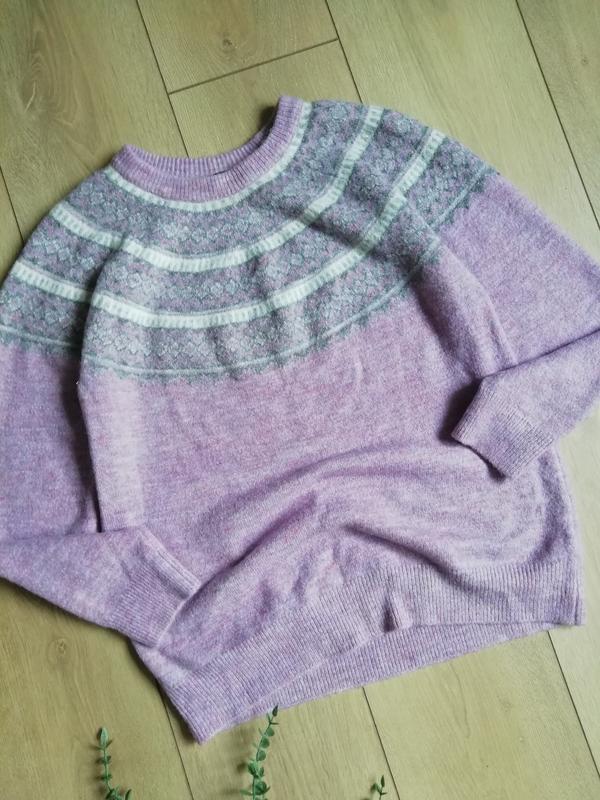 Женский свитер. Размер указан 14/L XL.. Ориентируйтесь на замеры. Длина свитера 60см. Полуобхват груди 48см.Полуобхват низа (резинки) 43 см. Длина рукава от горловины 69 см. Состав 69%акрил 28%полиэстер 3 %эластан. Стан идеален. Лучше подойдет на L.