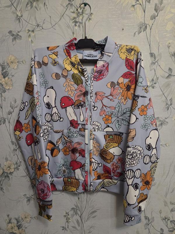 Это голубой бомбер Frogbox с цветочным принтом и изображениями Снупи.