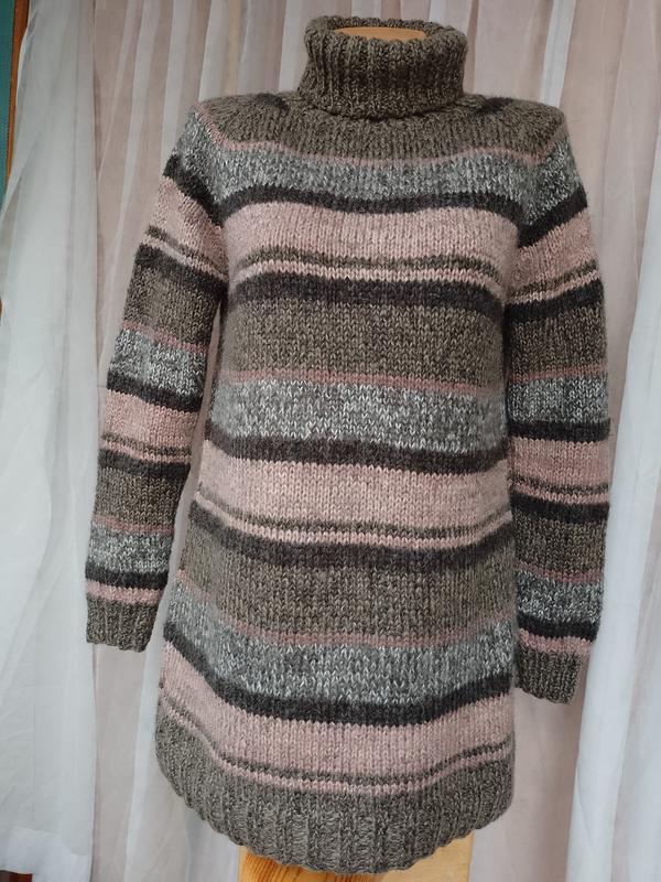 Очень теплое платье-свитер ручной работы для комфортной носки зимой, как вариант, с лосинами. Вязаный из шерсти с ангорой. Полуобъем груди 50см, длина изделия 74сс, длина рукава 67см.