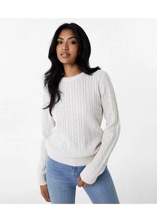 Це джемпер Jack Wills Tinsbury кремового кольору з кабельним вʼязанням із суміші мериносової вовни. Светр Тинсбері - класична модель. Просочений британською спадщиною, його культова в'язана структура натхнена віковими кельтськими плетеними техніками Тінсбері вʼязаний сигнатурним кабельним візерунком і прикрашений контрастною вишивкою логотипу на грудях. Тканина з мериносової вовни забезпечує супер тепло, ідеально підходить для загортання цього сезону. Пог 44 см. Ширина в плечах 35 см. Р 60 см. Д 56 см.