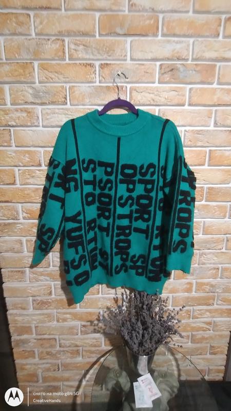 Теплый, тостенький свитерик с объемными буквами, размер оверсайз. но рукава коротковатые