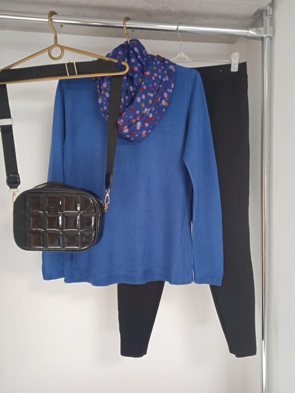 Классическая однотонная кофтонка с длинным рукавом насыщено синего цвета. Теплая и удобная. Приятная на ощупь. Гладкая машинная вязка. Нить средней толщины с легким ворсом. Стрейч. Фасон прямой. Ложится по фигуре. Аккуратный вырез Красиво смотрится с шарфом в тон в комплекте (шарф может быть заменен, но в цвете). Есть размеры. 38р на пог-48-50 36р на пог-46-48