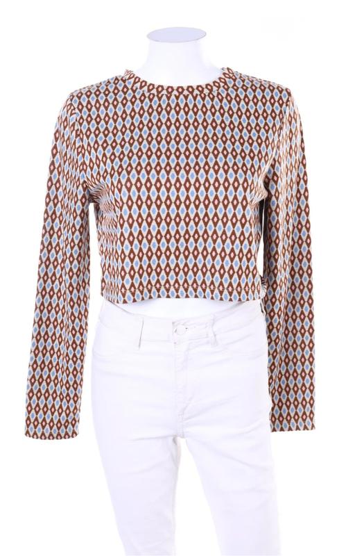 Укороченный свитер, кроп топ от Primark в геометрический принт.🩷💙 Очень стильно смотрится, подчеркнет Вашу фигуру, садится облегающее.😍 Размер указанного М,но будет хорошо смотреться и на S Стан-новой, без брожения 📏Замеры: длина -33см НОГ43см Рукав 59см