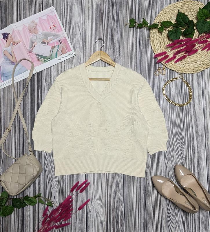 Молочный хлопковый свитер с коротким рукавом marks & spencer #4414