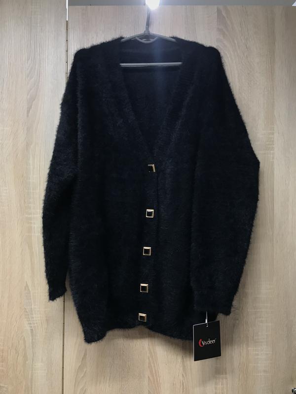 Новая кофта -кардиган.Очень стильная.Фирменная.Тепла,гарный состав ткани вискоза, шерсть.Размер около 52-54 замеры в личные