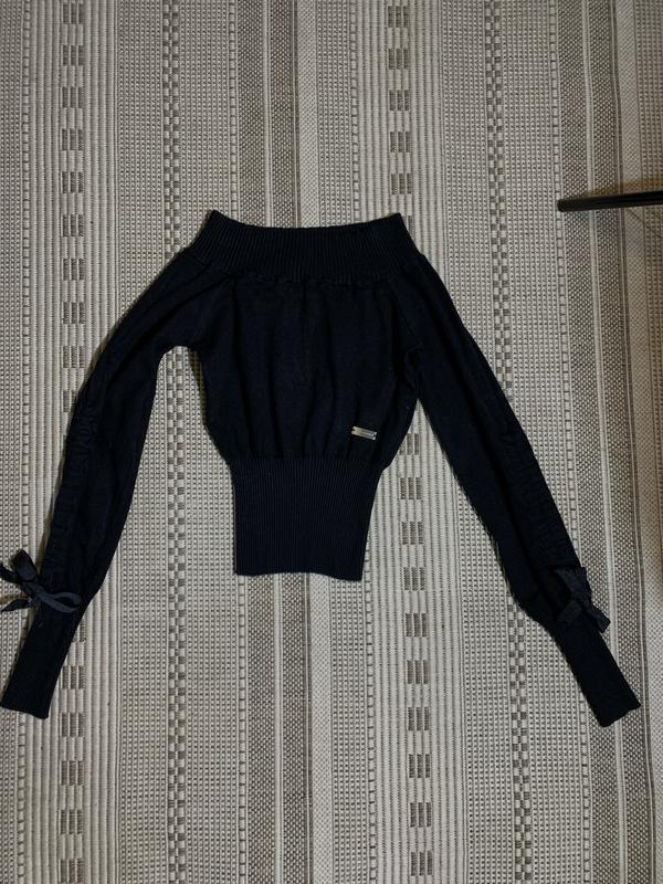 озкішна кофта з голими плечима , розкішними рукавами є зав’язки та можна трошки призбирувати рукави але основна фішка її це манжет на талії який її гарно підкреслює та моделює Розмір Ххс-С гарно тягнеться Стан хороший Склад тканини🫰 Довжина 42 Довжина рукава від пахви 52 Груди 34 Талія 22 добре тягнеться Низ 16
