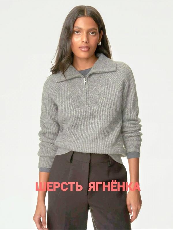 Актуальный джемпер британского бренда M&S, 100% шерсть ягнёнка. Длина-59-60, пог-55. Цвет светло-серый меланж.
