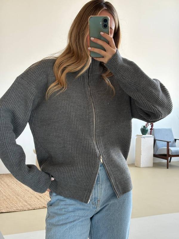 Светр на блискавці Склад: сумішна вовна Колір: чорний,молочний, сірий, шоколад Размір: one size