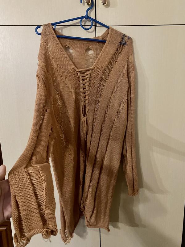 Светер сукня кардіган подовжений в’язаний з крупну дірку з родертостями рваний вінтаж гранж y2k shein Оверсайз Оверсайз від С до ХХЛ ✅