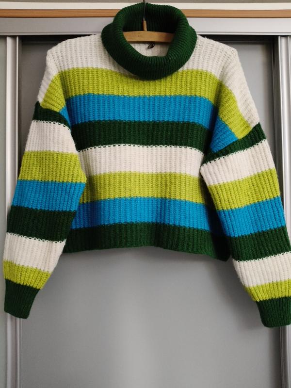 Укороченный свитер-гольф с насыщенными цветами крупной вязки Пог-65 Полуобхват по низу-60 Длина-49 Дов.рукава от горловины-75