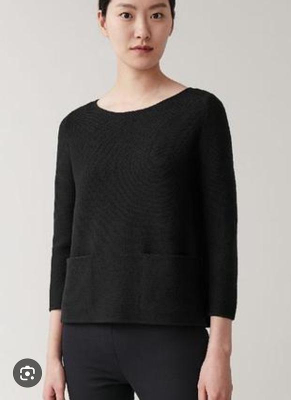 Идеальный базовый свитер! Этот стильный черный джемпер COS сшит из $100% премиальной мериносовой шерсти – чрезвычайно мягкой, "дышащей" и теплой.Ключовые детали:Элегантный крой с широким вырезом-лодочкой, подчеркивающим ключицы.Практические и модные накладные карманы. Замеры: плечи- 36 пог- 49 рукав- 55 длина - 58 указан размер - XS