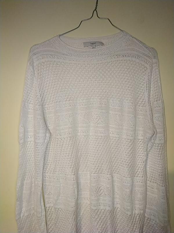 Вязаный белый свитер без дефектов рукав 66 см длина 70 см