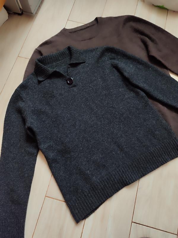 тепленький свитер с воротником, в составе 52%шерстности,28% полиамида и 20% вискозы длина 57 рукав 53 пог 47 плечи 40 можна і на с