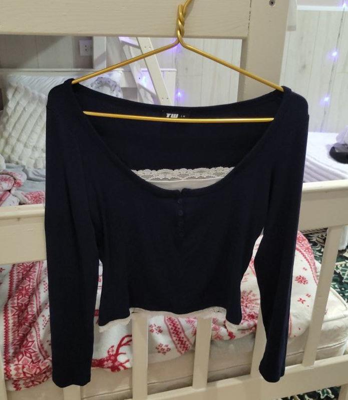 одевала 1 раз, состояние идеальное. кофта темно-синего цвета, с рюшами. размер м. состав ткани: элестан и хлопок