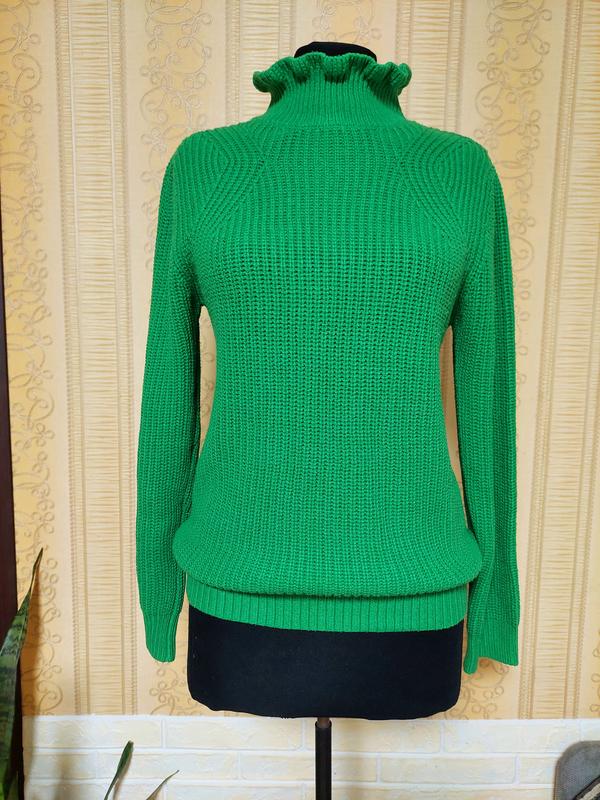 Красивый, с высокой горловиной, в трендовый цвет свитерик. Свободный крой, рукавчик и низ на широком манжете-резинке. Довжина 68см, пог 48см, пот 45см, низ резинка 42см, рукав 63см.