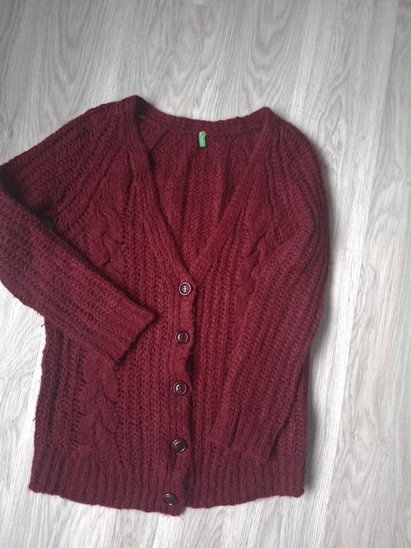 Кофта Benetton Xs/S/M шикарный цвет бургунди. длина 73 груди 53. состояние новой. в составе шерсть и мохер. Тепла
