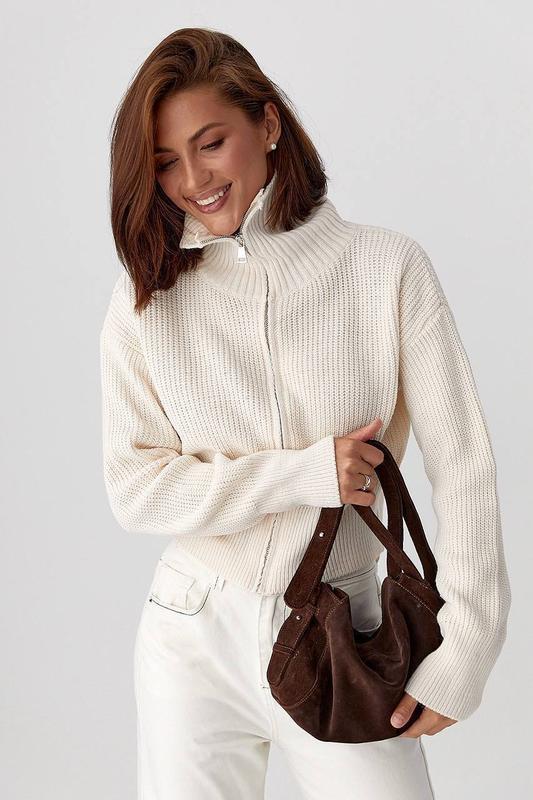 Трикотажна кофта з блискавкою ворот/стійка💡 Виробник: Туреччина Склад: 80% акрил, 20% вовна Розмір: універсальний Колір: молочний, чорний, шоколад Ціна: 1399 грн