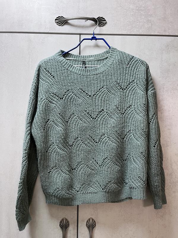 Бірюзовий светр з ніжним візерунком.
