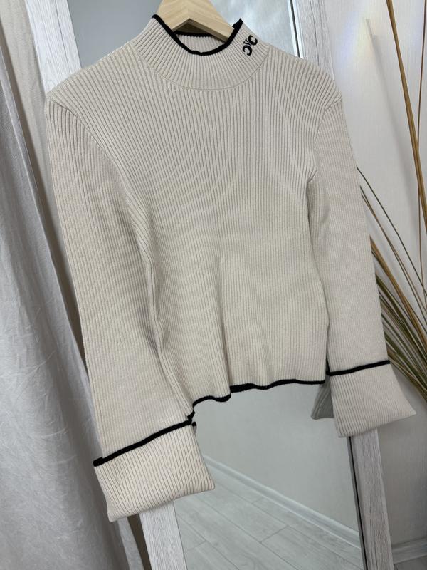 Жіноча кофта,светр,вʼязана,з декоративною відстрочкою,широкий рукав,стійка,доповнена вишивкою з лого