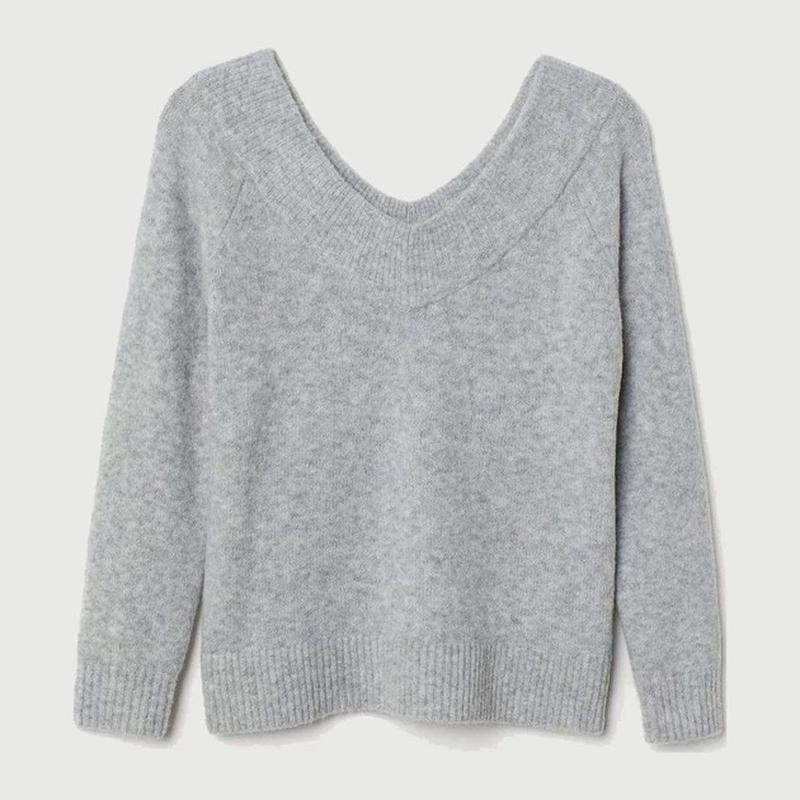 Стильний жіночий сірий вязаний светр з V-подібним вирізом H&M Розмір М Довжина 57 ПОГ 52 62% акрил, 28% поліамід, 8% вовна, 2% еластан
