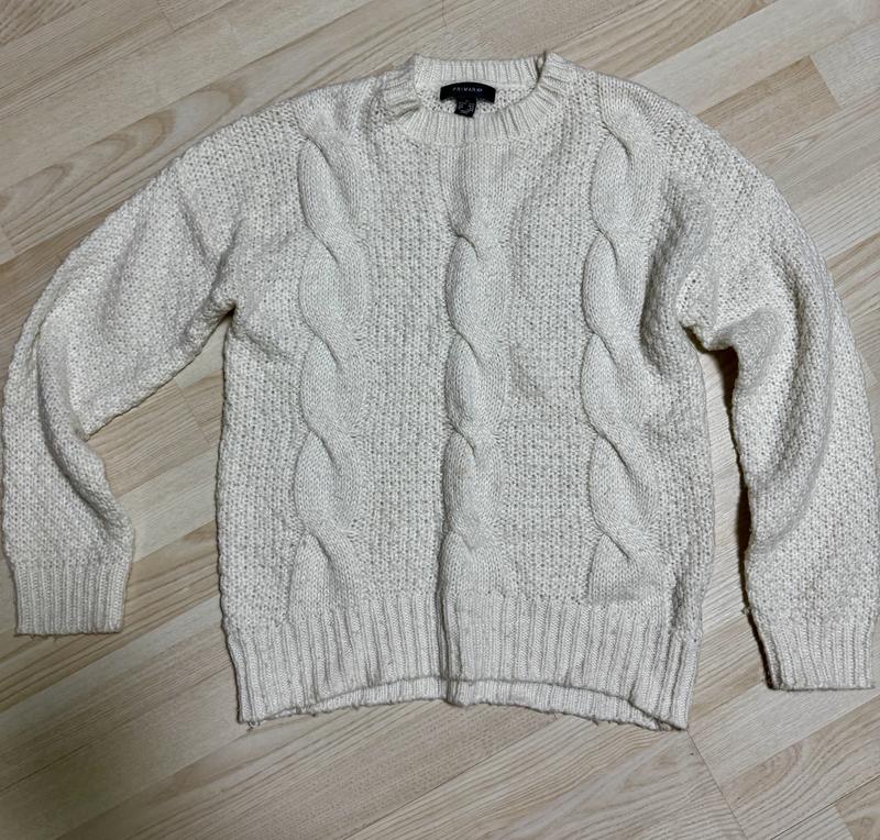 Светрик від прімарк, розмір m 12-14, можна й на менший розмір Ширина 53 Довжина позаду 60 без коміра, комір 3 см Спереду 51, комір 3 На останньому фото вдягнено на менший розмір як оверсайз. Є малесенька плямка ~5 мм, не пробувала вивести В ціні вже враховано