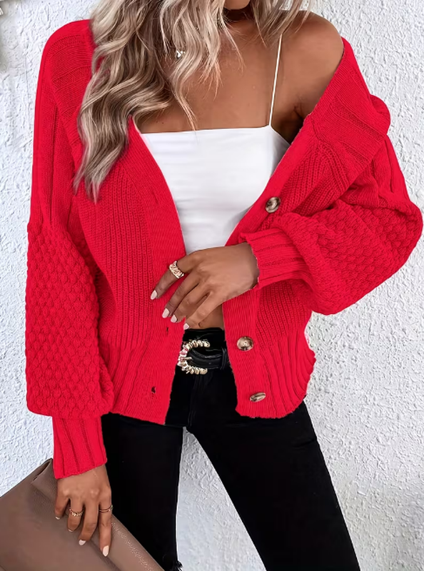 Кардиган,свитер с V-образным вырезом и застежкой пуговицы.Текстурный рукав фонарик.Состояние новой вещи. пог 48 рукав от горловины 66 длина 46 низ 32