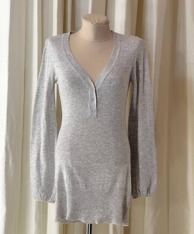Светер жіночий сірий (меланж) BCBG MAXAZRIA🛍️❤️🔥 Розмір - UK 8-10/ EUR 36-38/ USA 4-6/ S-M / 44-46. Склад : 15% ангора, 35% вовна, 50% нейлон. Виробник Китай. Светер приталеного крою подовжений, середня щільність. Глибоке декольте з застібкою на ґудзики. Додаткові заміри: повна довжина 76 см, ширина плечей 36 см, довжина рукава 65 см, напівобхват грудей 44 см (повний обхват 88 см) і тягнеться до 100 см, напівобхват талії 37 см (повний обхват 74 см) і тягнеться до 90 см, напівобхват стегон 42 см (повний обхват 84 см) і тягнеться до 110 см.
