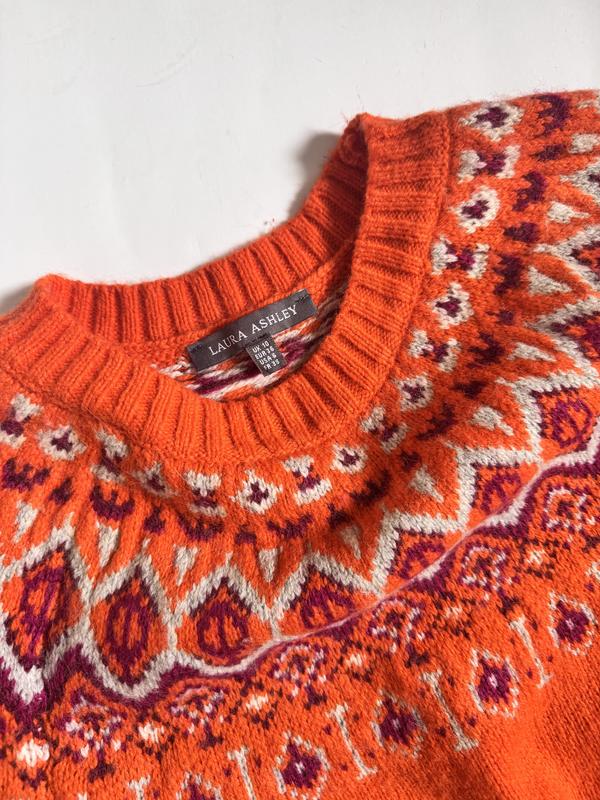 Светр 🔥 від Laura Ashley у стилі Фер-Айл Склад: 50% wool, 30% nylon, 20% cotton Розмір 10, сяде добре на S-XS Довжина - 65 см Напівобʼєм грудей - 44 см