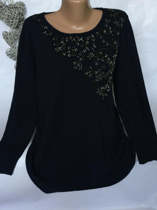 Грудь 56, талия 57, бёдра 58 тянется , длина 77, плечи 42, рукав 6020% шерсть и 10% кашемир