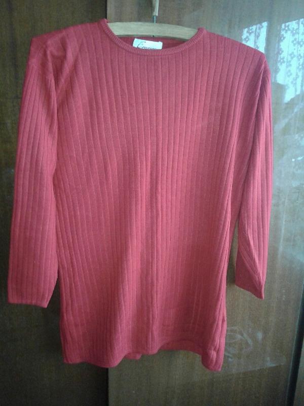 Легкий свитерок.Цвет не коралловый как на фото,а ярко красный.Размер наш 48-50(12 евро.) Точные замеры позже)