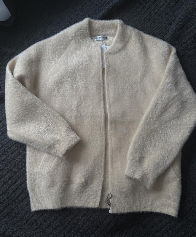 Чудова кофта на блискавці з кишенями в гарному ніжному кольорі, гарно тримає форму