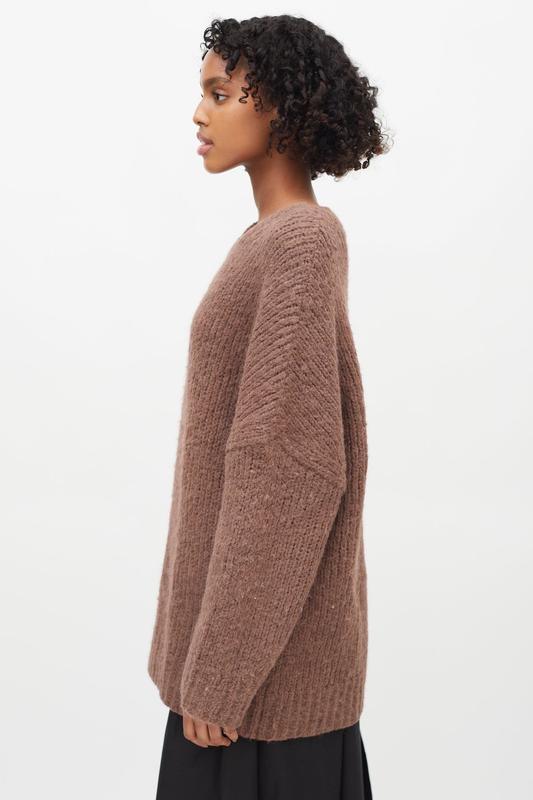 Вовняний светр оверсайз, гарний колір кави з молоком, виробництво Італія, без нюансів