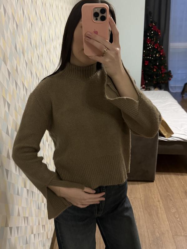 Жіночий светрик one size У кольорі кемел Має розрізи на рукавах