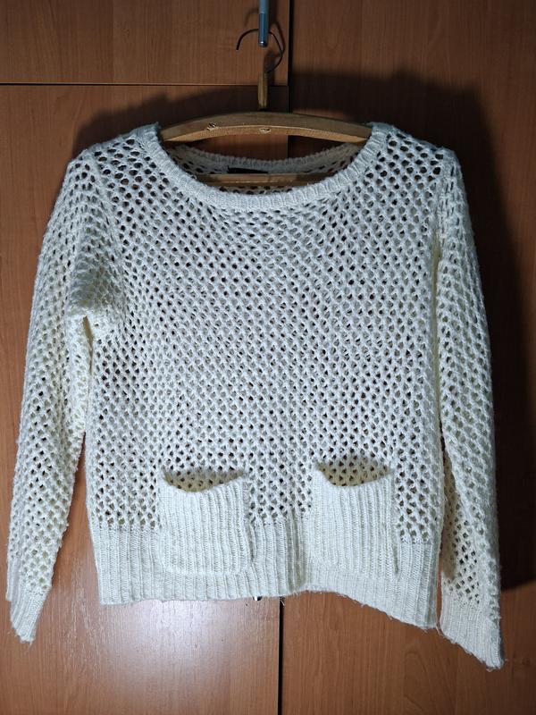 Тёплый свитер в сеточку, оверсайз, в красивом состоянии. Длина 58 см, рукав 59 см. Подойдет и на S,M также.