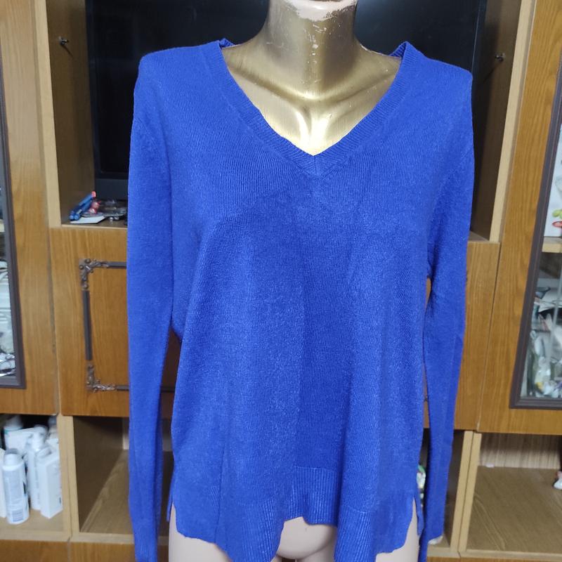 свитер с v образным вырезом и разрезиками по низу ,цвет электрик