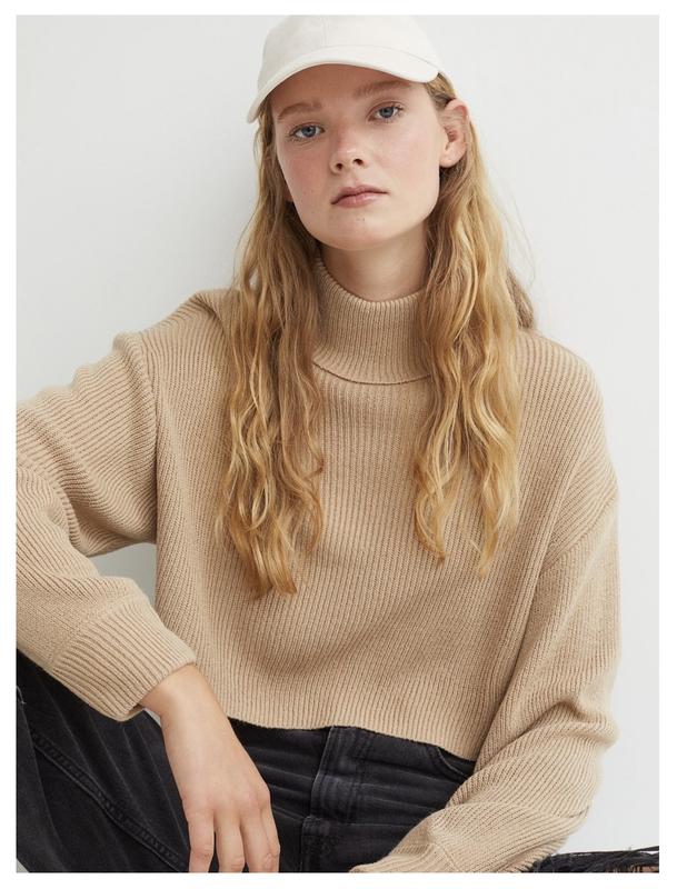 Светр H&M у розмірі S бежевого теплого відтінку вкорочений, з горловиною. не має схильності до утворення катишок. Довжина 44 см, довжина рукава 52 см, обсяг грудей: 104 си Стан гарний