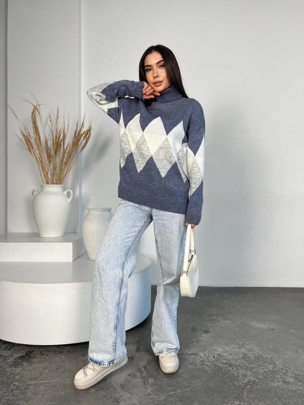 Светрик 🥮🍁☕️ Модель 5045 modn Размер универсальный 44-56 Состав: полушерсть. Дуже теплий, нитка Марс Цена 899 грн Цвета: джинс, светлая пудра, молоко, темная пудра Замеры: Длина изделия 64 см. Ширина изделия 53 см/в растянутом виде 63 см. Длина рукава от горловины, вместе с плечом 72 см.