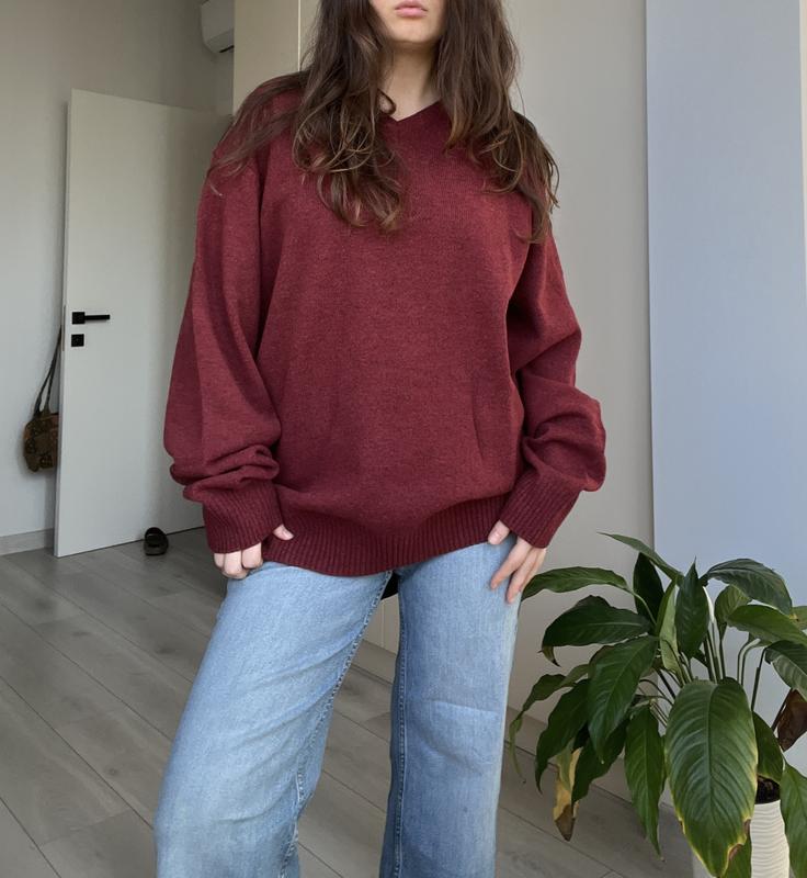 Свитер пуловер джемпер хиппи винтаж бохо шерсть ламы lambswool бордо оверсайз широкий своб...