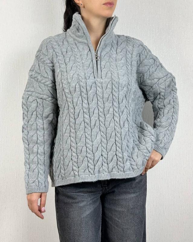 Стиль та комфорт в одному образі! Трикотажний светр з об’ємною в’язкою «косичка» 🤍 Модель із замком-блискавкою та коміром-стійкою — виглядає дорого та зігріває у прохолодні дні Виробник: Туреччина Розмір: універсальний Тканина: 80% акрил, 20% вовна Колір: молочній, серий, Ціна: 1600 грн Заміри: Довжина: 59см Обьем грудей: 130см Довжина рукава від шиї: 68см №3009