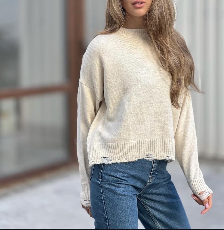 Светр мягенький з рваностями, розмір One Size, без дефектів. Заміри на фото.