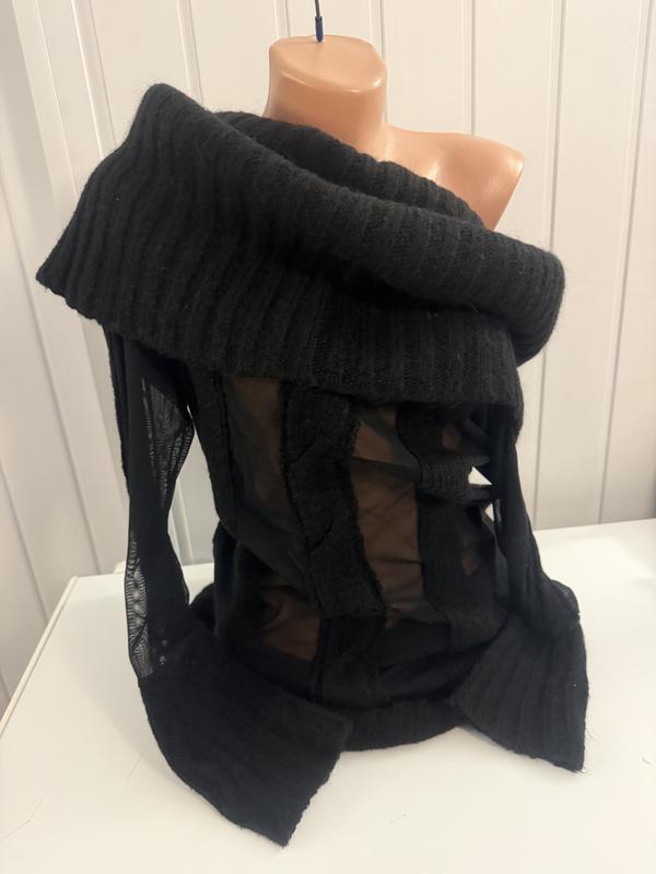 Дуже гарний мохеровий светр чорного кольору у поєднані з прозорою тканиною ! Подовжений , напівпрозорий , розмір S/M