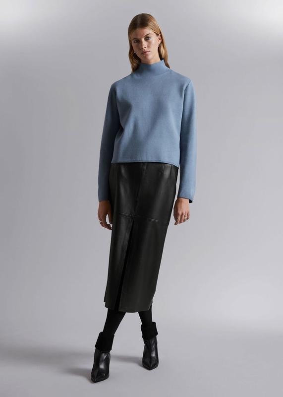 Светр з високим коміром & Other Stories. З вкороченим, злегка оверсайз силуетом. Розмір М. Підійде також на xs, s. Довжина по спинці 52 см. Склад 62% віскоза, 20 поліестер, 16 поліамід, 2 еластан. Стан нової речі.